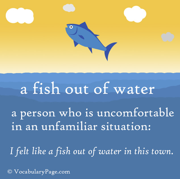 "Moving from a small town to a big city made him feel like a fish out of water."