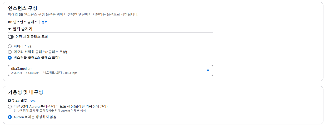 - 드롭다운 메뉴에서 db.t3.medium 인스턴스 타입을 선택합니다.