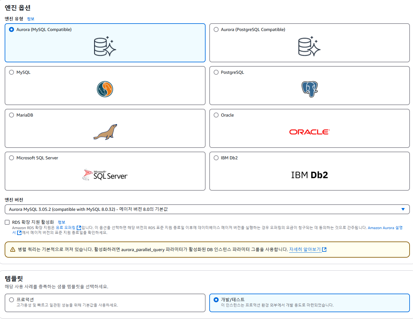 - Engine type: Aurora (MySQL Compatible) 를 선택합니다.