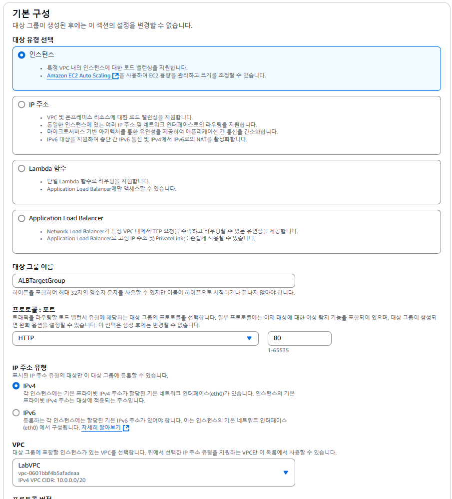 - VPC: 드롭다운 메뉴에서 LabVPC를 선택합니다.