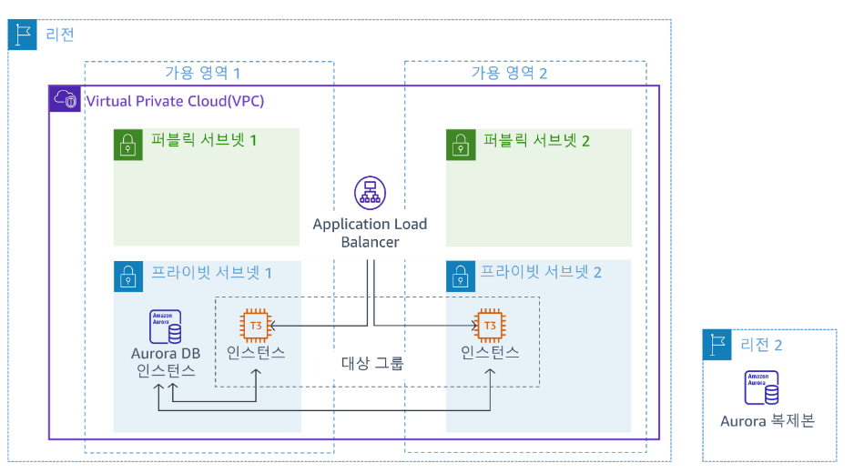 어떤 환경에서나 백엔드 데이터베이스는 중요한 역할을 하며, 이 중요한 리소스의 보안과 액세스는 어떤 아키텍처에서도 매우 중요합니다. 이 실습에서는 Amazon Aurora 데이터베이스(DB) 클러스터를 생성하여 MySQL 데이터베이스와 Application Load Balancer(ALB)를 관리합니다. Well-Architected Framework의 Amazon Web Services(AWS) 보안 핵심 요소에서는 사람들을 데이터에서 떨어뜨려 놓을 것을 권장하므로 데이터베이스는 Application Load Balancer를 사용하여 프런트 엔드에서 분리됩니다. Application Load Balancer는 프런트 엔드 애플리케이션을 호스트하는 정상 Amazon Elastic Compute Cloud(Amazon EC2) 인스턴스로 트래픽을 라우팅함으로써 고가용성을 제공하고 프라이빗 서브넷의 Application Load Balancer 뒤에서 데이터베이스와의 통신이 이루어지도록 합니다.
