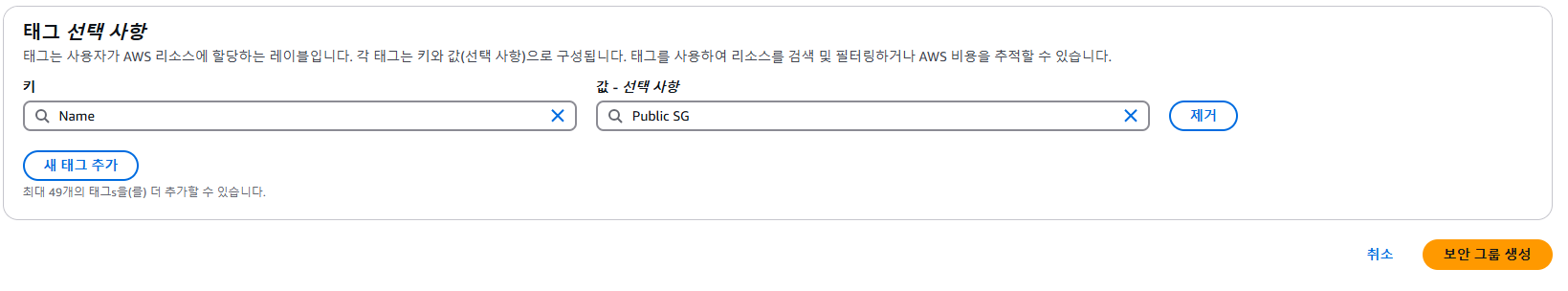 - 표시되는 목록에서 Public SG를 선택합니다.