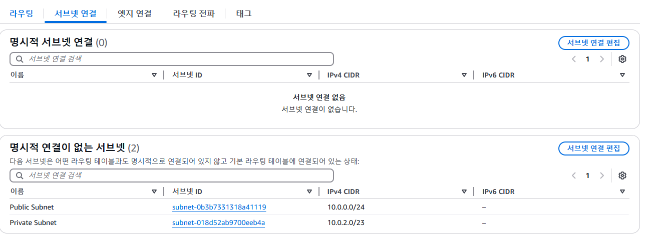 - 라우팅 테이블 구성 및 서브넷에 연결