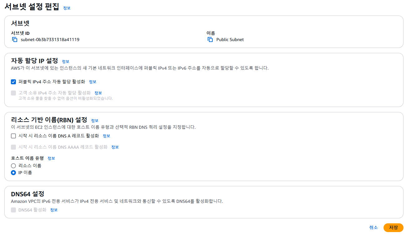이제 서브넷 안에서 시작되는 모든 인스턴스에 퍼블릭 IP 주소가 자동으로 할당되도록 서브넷을 구성할 것입니다.