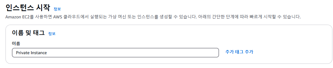 - Name 필드에 Private Instance를 입력 합니다.