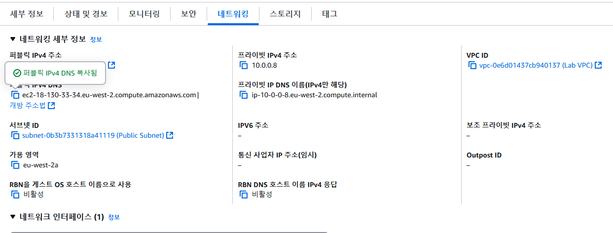 - Public IPv4 DNS로 이동합니다.