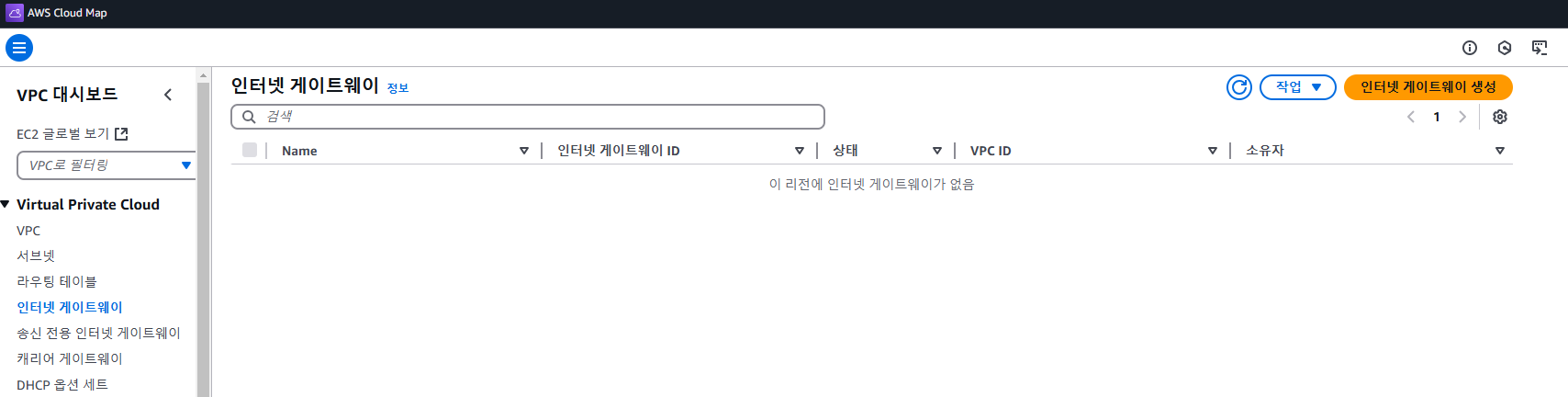 - 인터넷 게이트웨이 생성