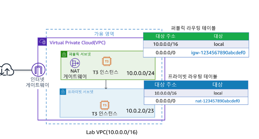 축하합니다! Lab VPC에서 퍼블릭 서브넷과 프라이빗 서브넷을 생성했습니다.