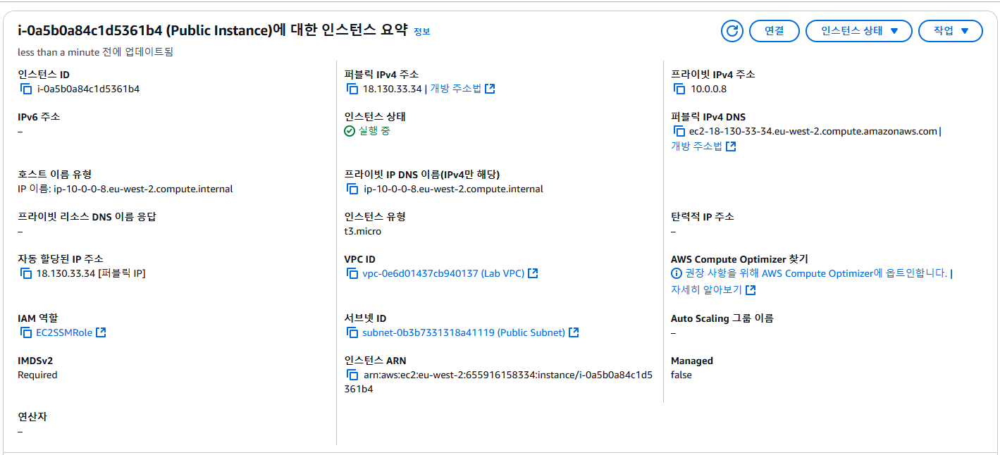 이 과제에서는 Session Manager를 사용하여 퍼블릭 서브넷에 있는 Amazon EC2 인스턴스에 연결합니다.