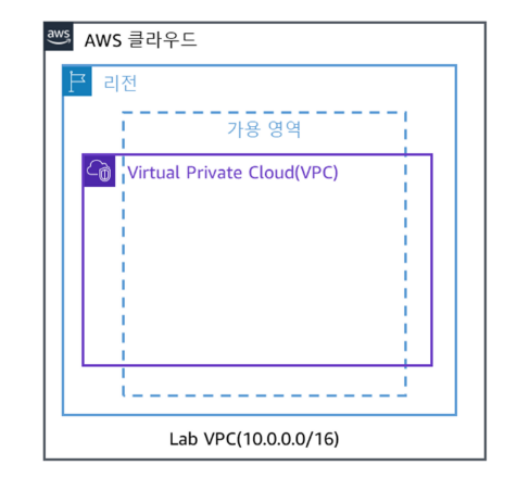 Lab VPC의 Classless Inter-Domain Routing(CIDR) 범위는 10.0.0.0/16이며, 10.0.x.x로 시작하는 모든 IP 주소가 포함됩니다. 이 범위에는 65,000개 이상의 주소가 포함됩니다. 나중에 이 주소를 별도의 서브넷으로 분할합니다.