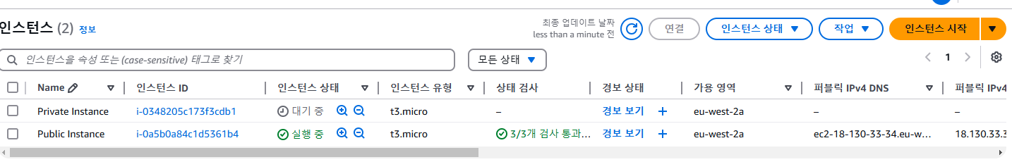 Private Instance Amazon EC2 인스턴스는 pending 상태로 시작됩니다. 인스턴스의 부팅이 완료되면 인스턴스의 상태가 Running로 변경됩니다.