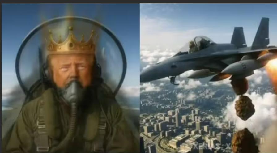 Hours later, he posted an AI-generated clip on his Truth Social platform in which he can be seen wearing a crown and piloting a fighter jet that drops what appears to be feces on anti-Trump protesters.