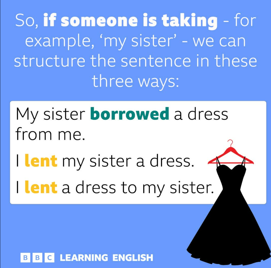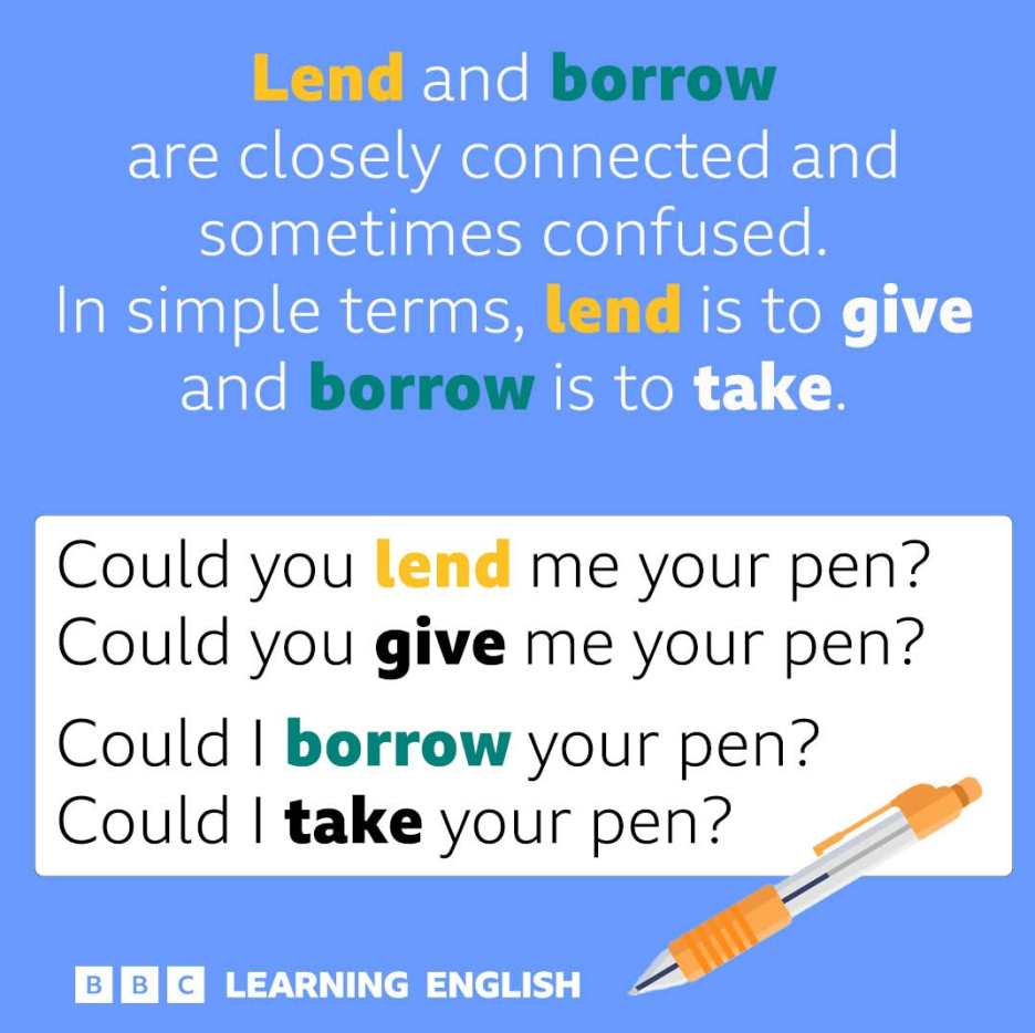 그럼 똑같은 내용을 lend와 borrow를 사용해서 문장을 정리를 해보면