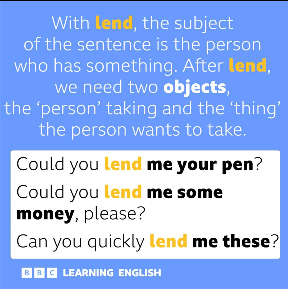 반면에 Lend는 원하는거를 가지고 있는 사람이 주어가 되죠...