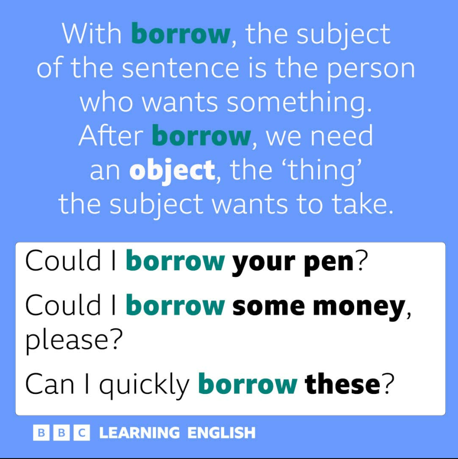 borrow는 문장의 주어가 무언가를 원할때 사용을 한답니다.