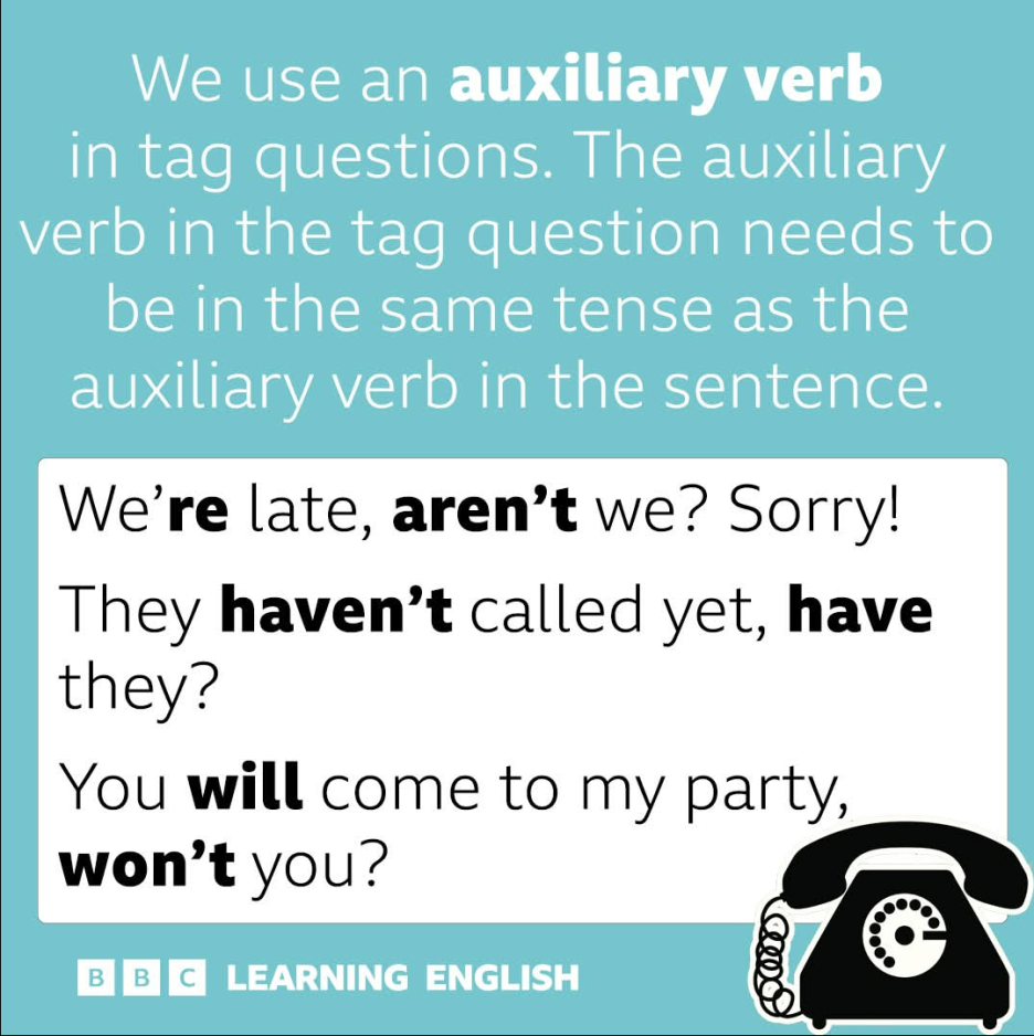 한가지 더 중요한 규칙을 보면... 주 문장에 있는 동사와 Tag 문장에 있는 동사는