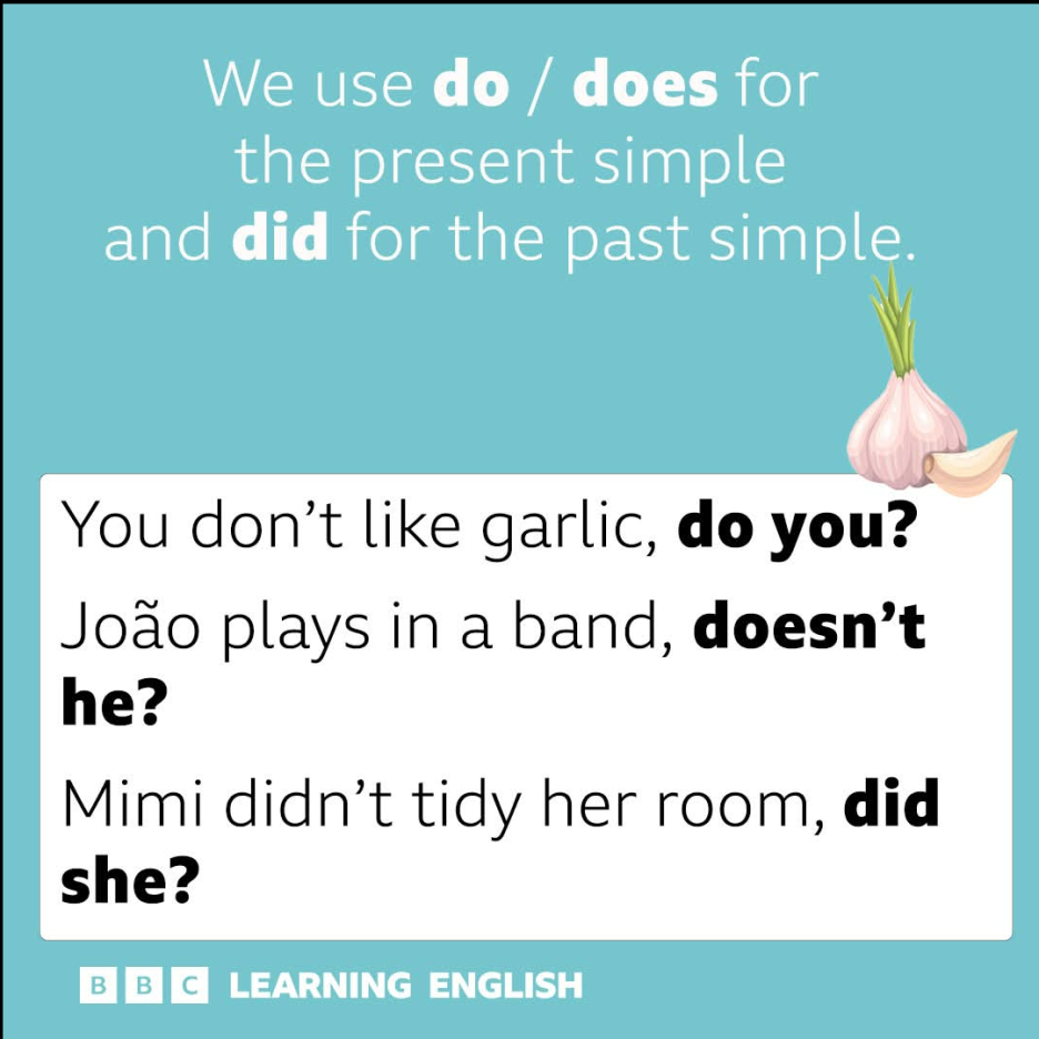 이런 형식으로 사용을 하지요. 주 문장이 긍정문이면 Tag 문장은 부정문으로 ㅎㅎ