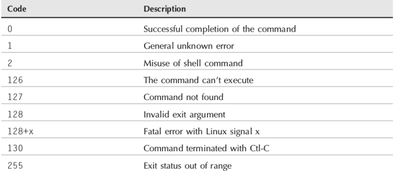 In Linux, the execution result of the command is stored as a number in the exit variable. The agreed exit code is as shown in the table below, and the script uses this exit code to create a script that performs various operations, so it is used in many scripts. If the command is executed successfully, exit code returns 0, and when no command is executed, exit code returns to number 127. You can check this code value by using echo $?.
